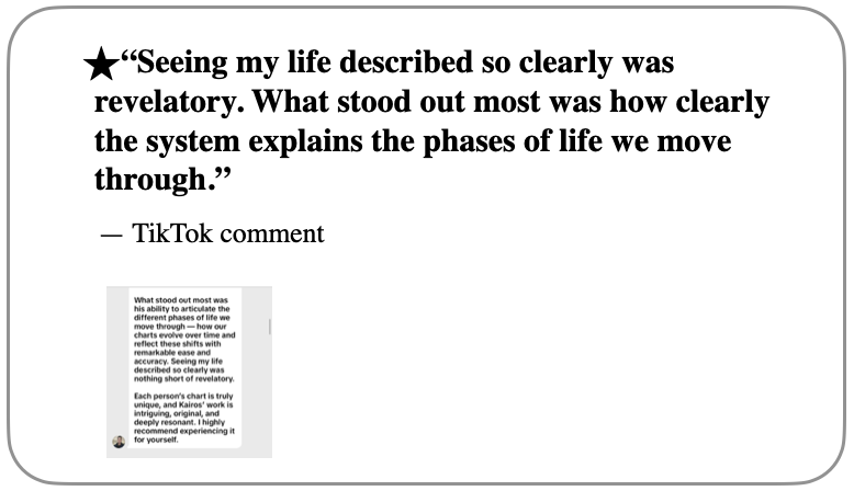 If you’ve seen my chart breakdowns on TikTok, this course teaches the foundations behind that system — a practical framework for understanding who you are and the phases your life moves through.